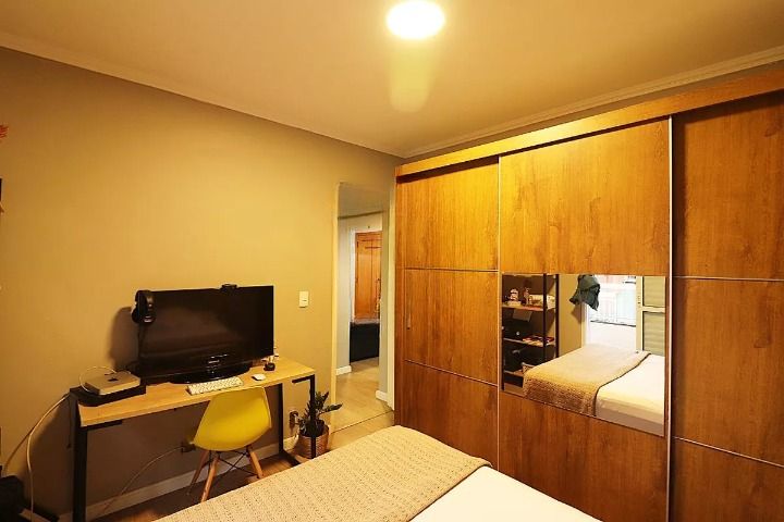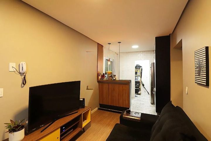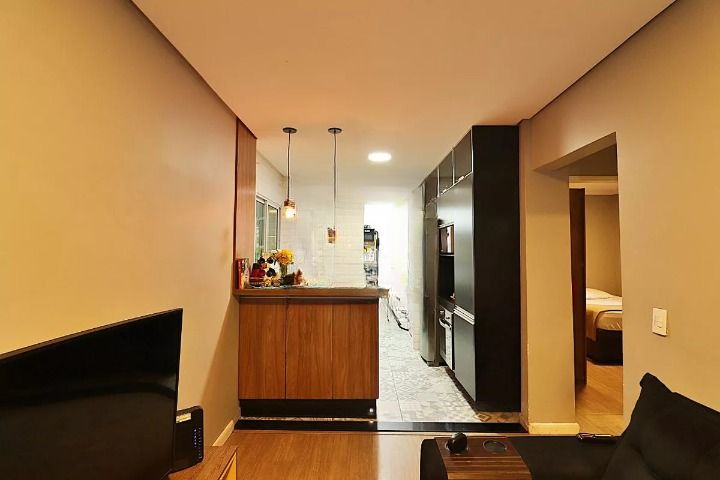 Apartamento com 2 dormitórios, sala com varanda, 1 banheiro, cozinha, área de serviço e 1 vaga de garagem. Imóvel bem distribuído, com armários nos dormitórios, banheiro e cozinha, além de box instalado. Ambientes funcionais e ótima iluminação natural, ideal para moradia ou investimento.