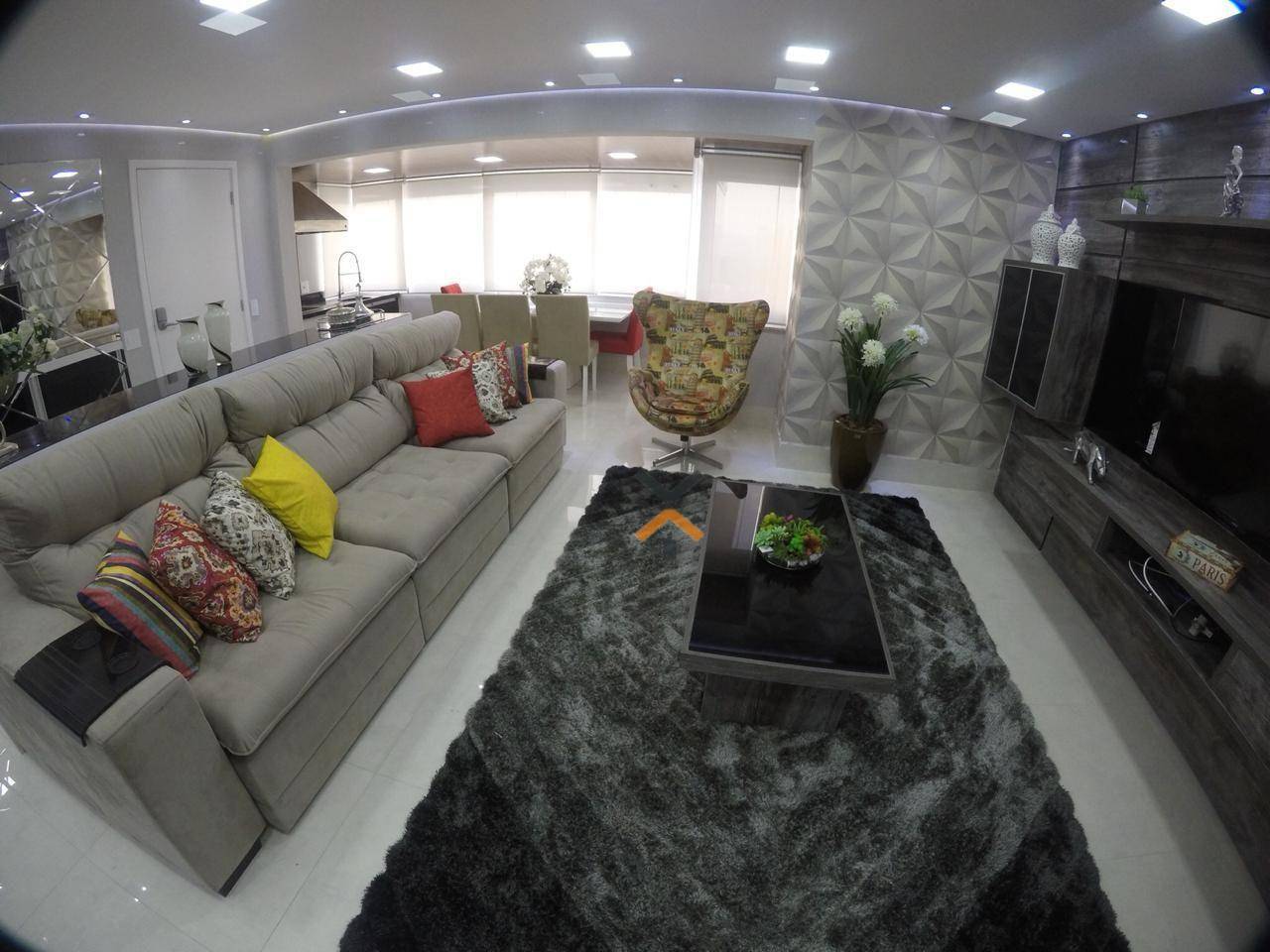 Apartamento mobiliado com 3 dormitórios planejados, todos suítes, sala para 2 ambientes integrada ao terraço gourmet com churrasqueira, lavabo, cozinha planejada, área de serviço e 3 vagas de garagem.