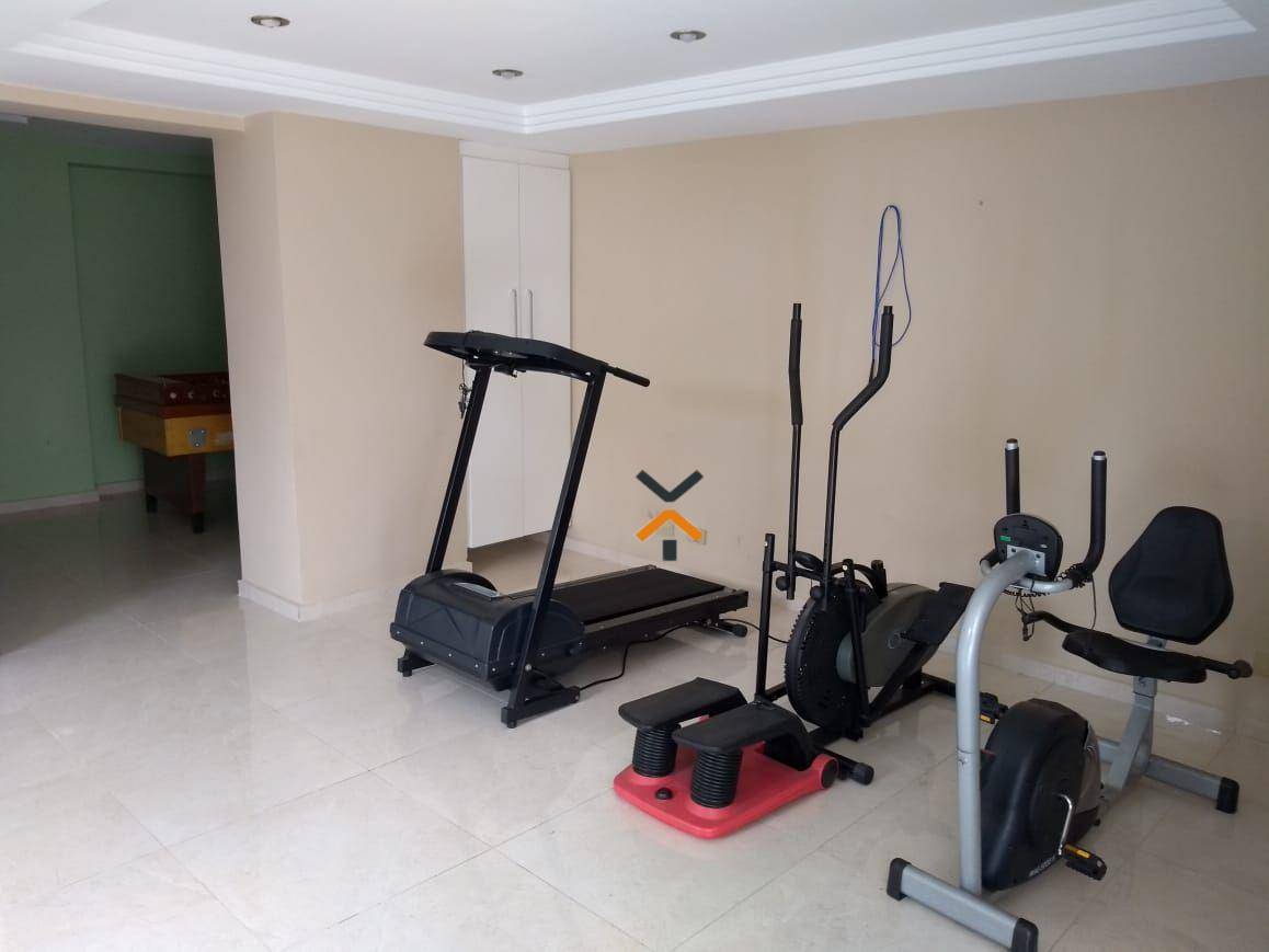 Condomínio com churrasqueira, hall de entrada, sala de ginástica, salão de festas, salão de jogos.
