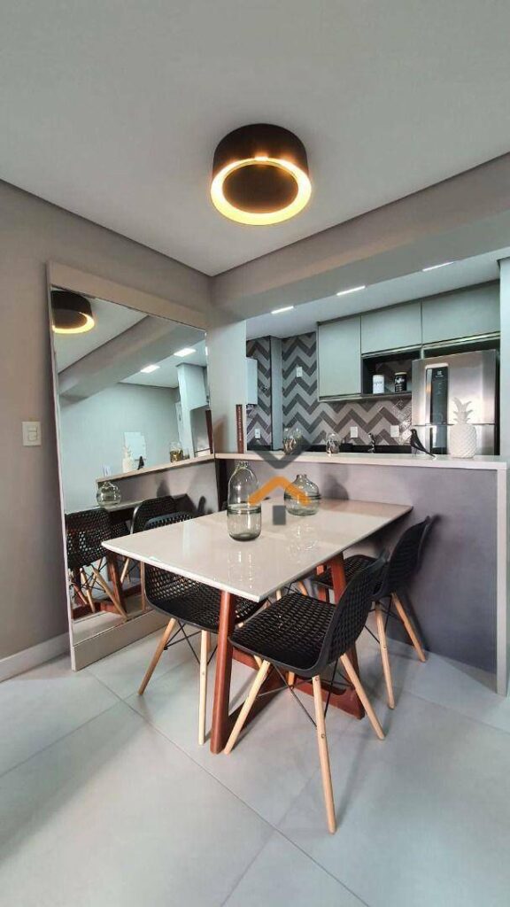 Móveis planejados na sala, dormitórios e cozinha.