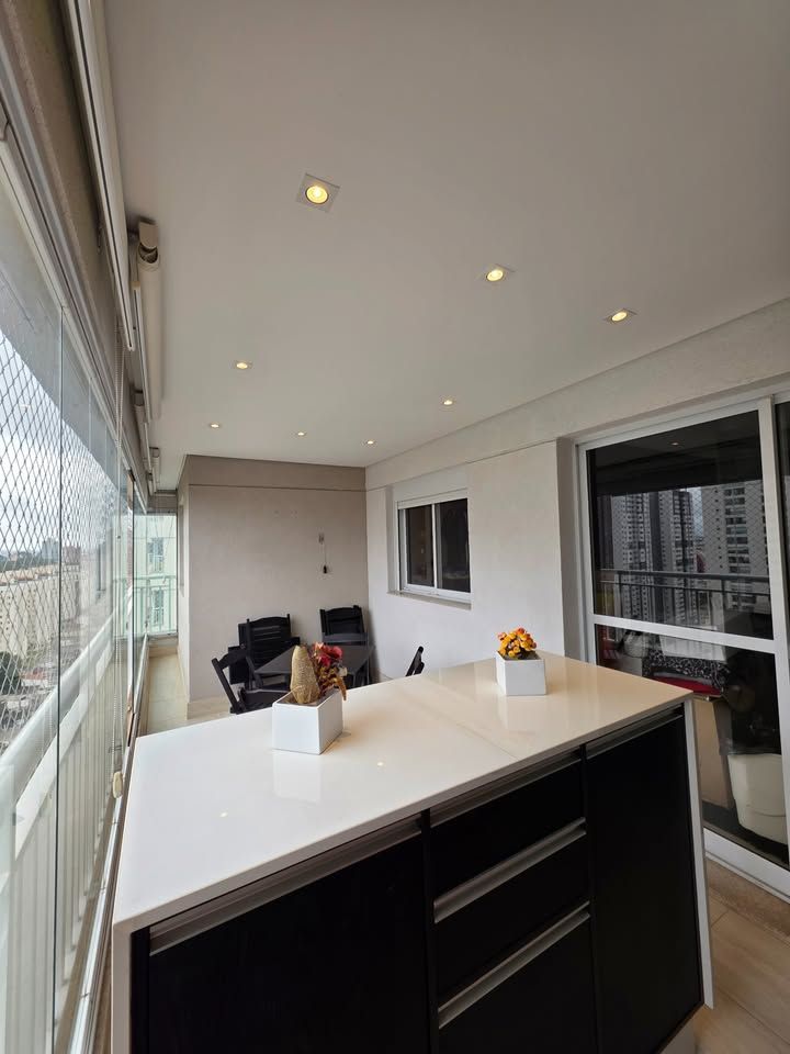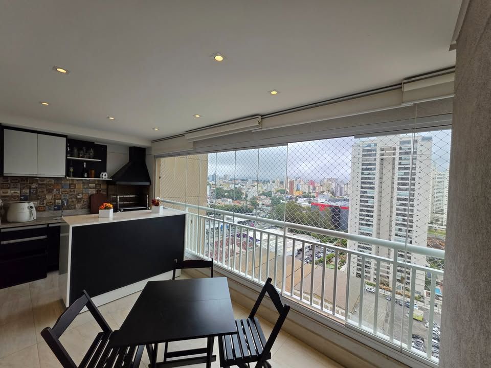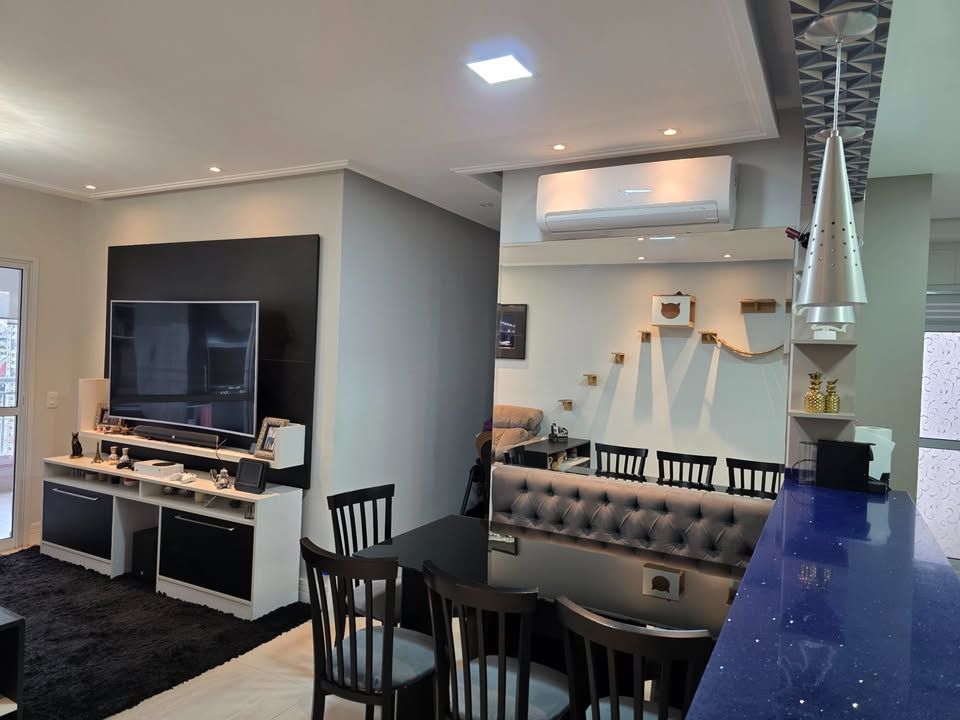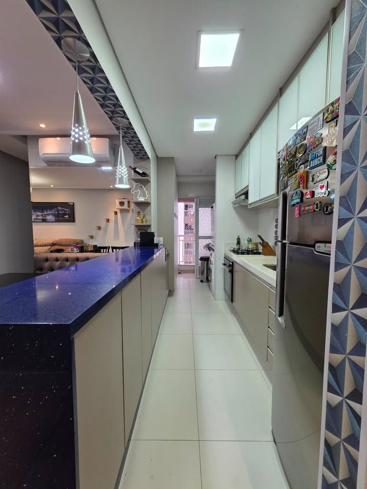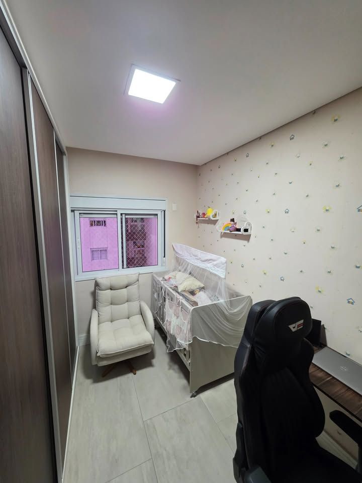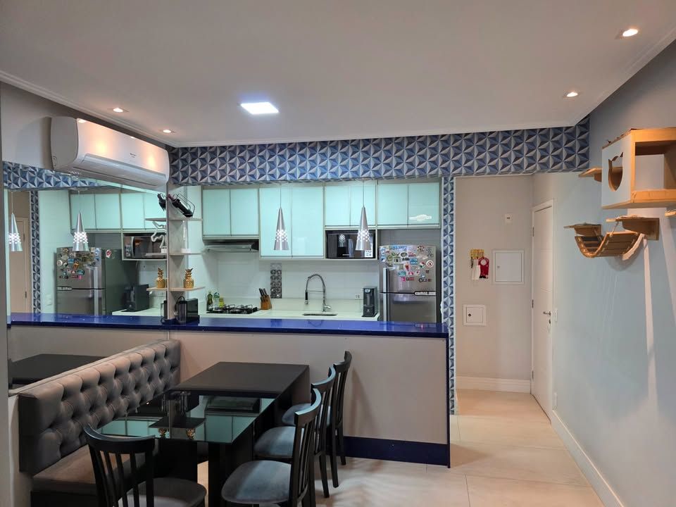 Apartamento pronto para morar, com 3 dormitórios, sendo 1 suíte, 3 banheiros, sala com sacada, cozinha planejada, lavanderia e 2 vagas de garagem fixas. Possui móveis planejados na cozinha, dormitórios, sala e banheiros, armários com sistema soft close, ar-condicionado bi-split na sala e suíte, closet aberto, bancadas em pedra Estrelar Premium, piso cerâmico em peças grandes, espelhos amplos e sancas com iluminação em LED.