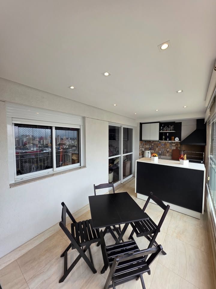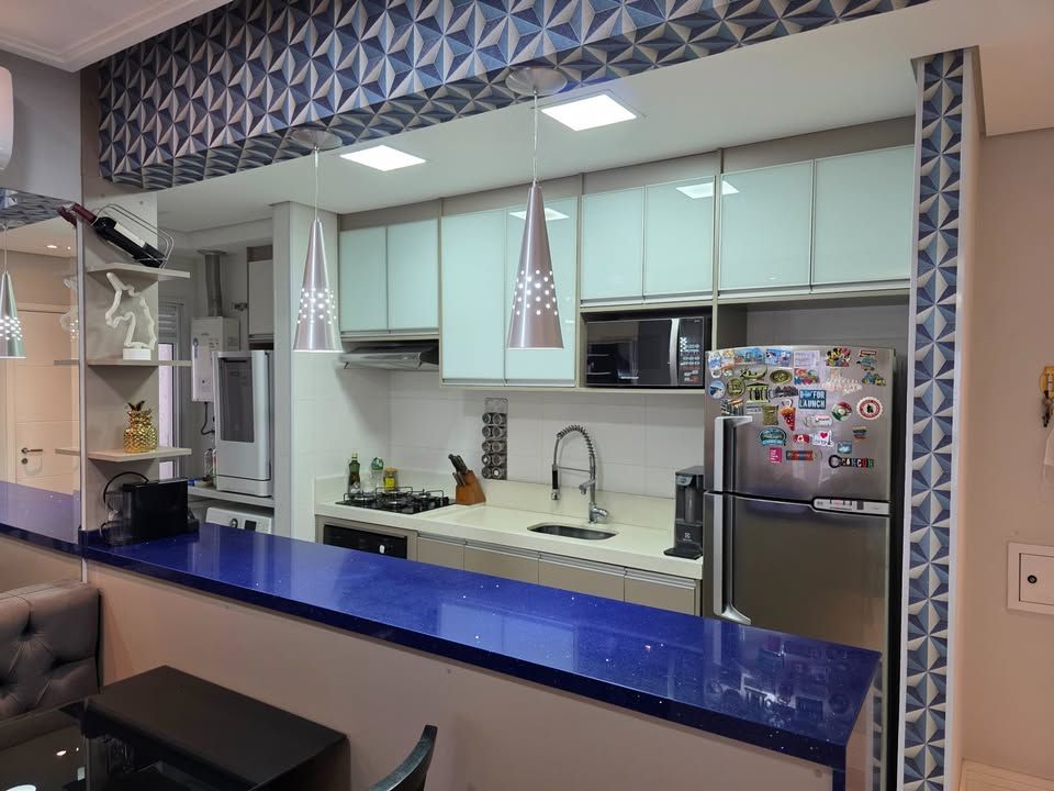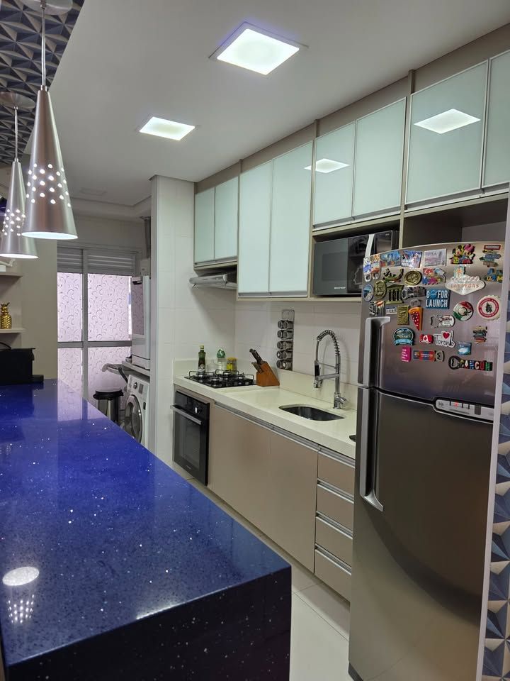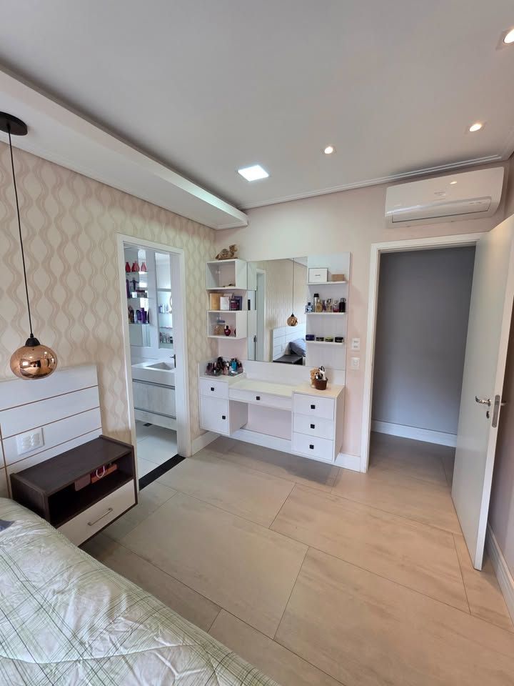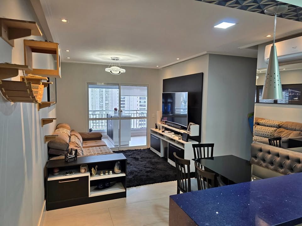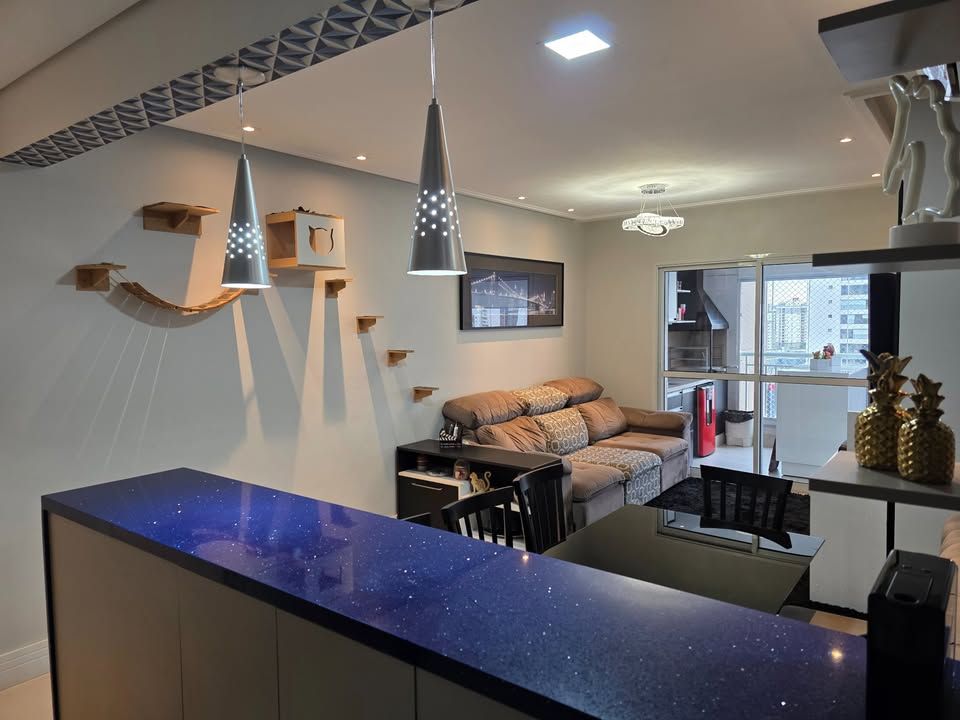Apartamento pronto para morar, com 3 dormitórios, sendo 1 suíte, 3 banheiros, sala com sacada, cozinha planejada, lavanderia e 2 vagas de garagem fixas. Possui móveis planejados na cozinha, dormitórios, sala e banheiros, armários com sistema soft close, ar-condicionado bi-split na sala e suíte, closet aberto, bancadas em pedra Estrelar Premium, piso cerâmico em peças grandes, espelhos amplos e sancas com iluminação em LED.