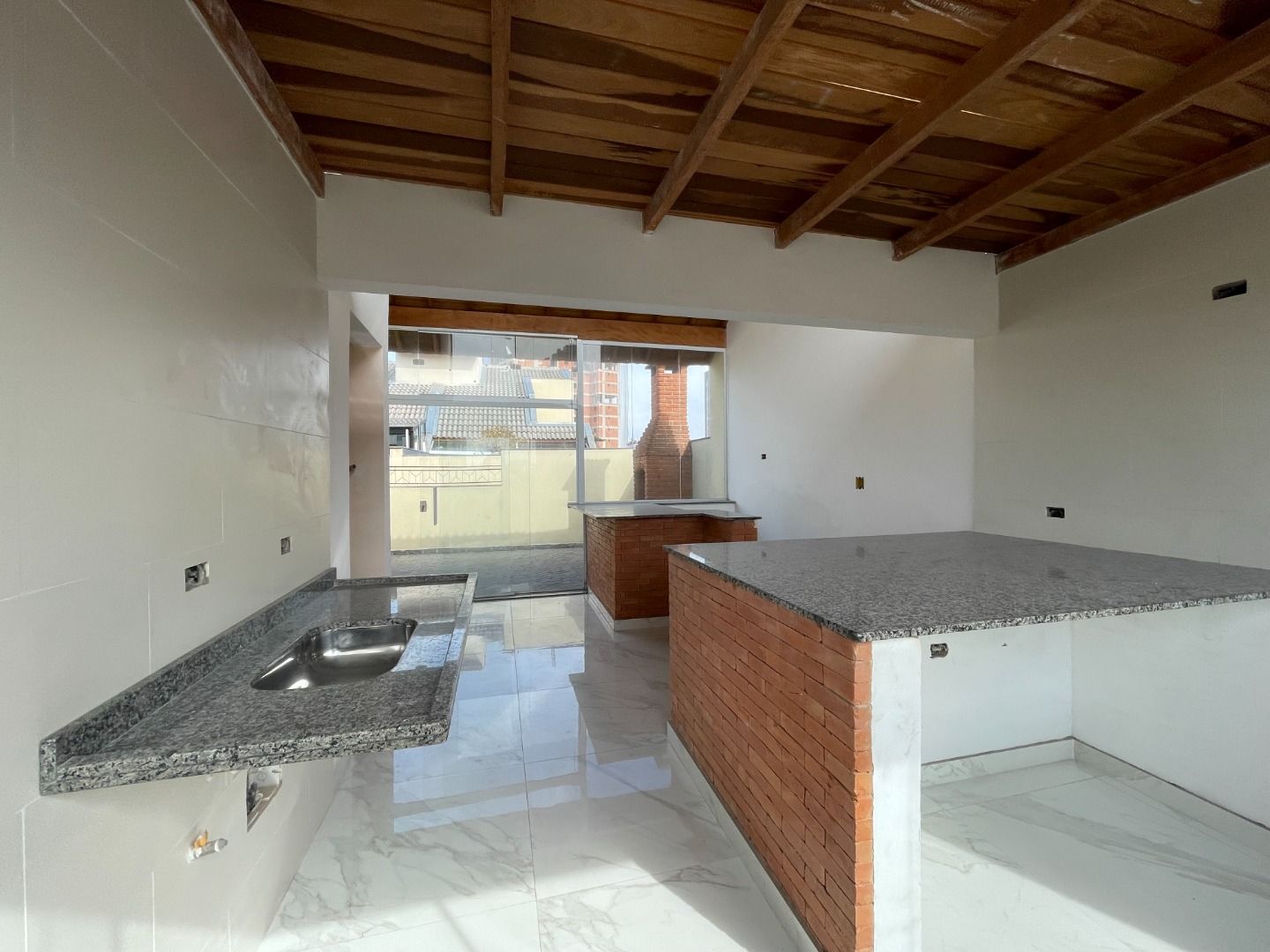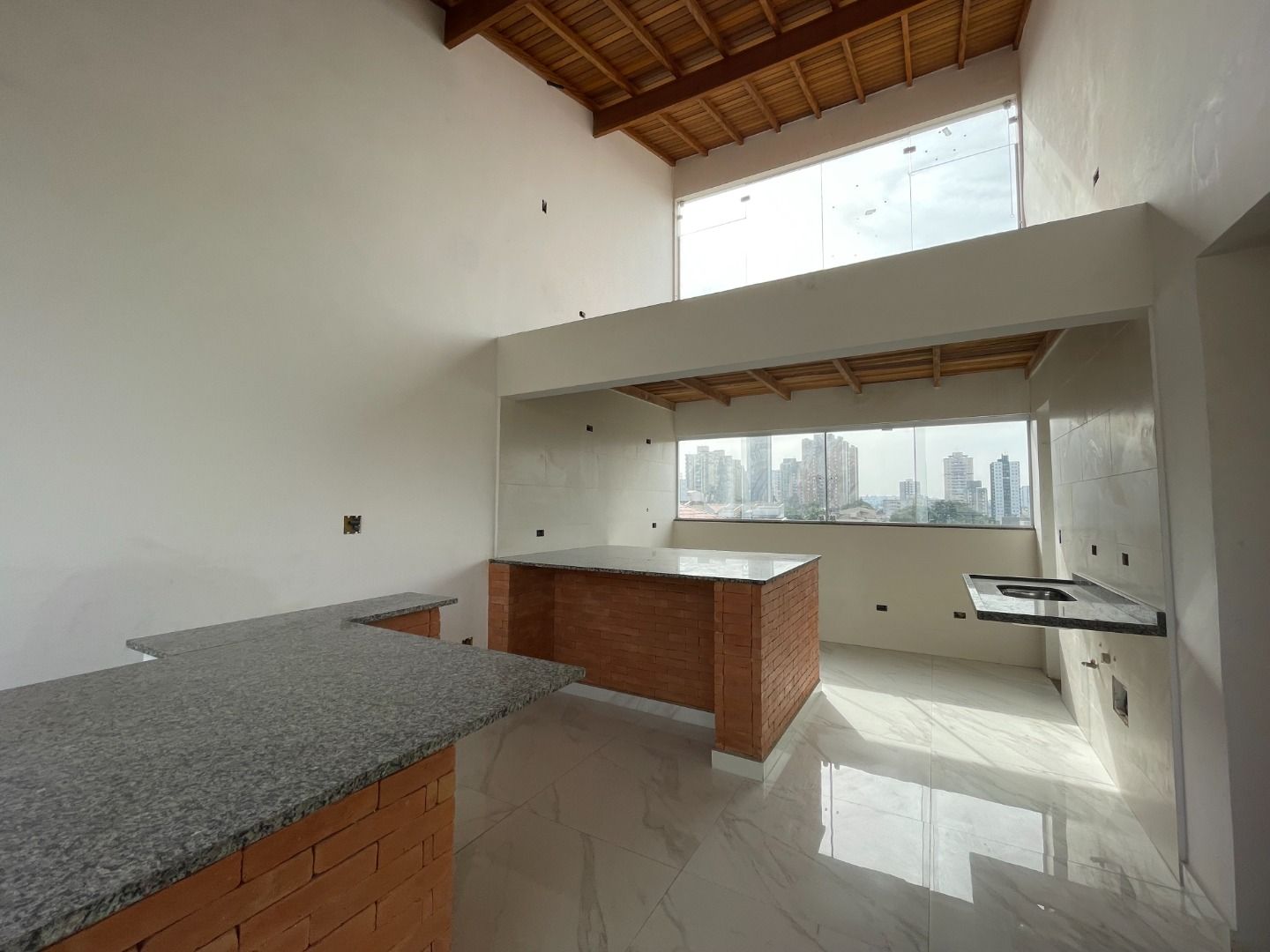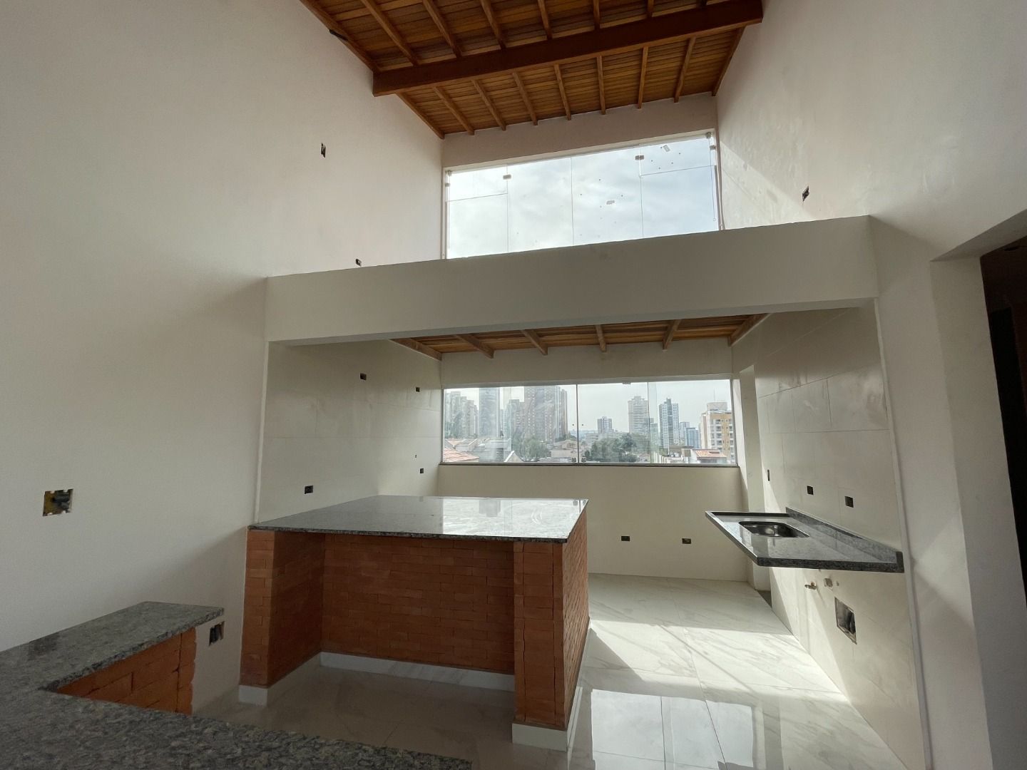 Cobertura com 2 dormitórios, w.c social, lavabo, sala 2 ambientes, cozinha completa, área de serviço, escada interna para a cobertura com área gourmet com quintal e 3 vagas de garagem.