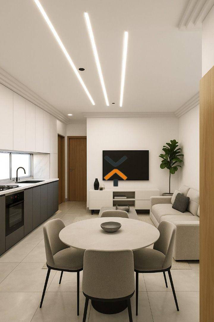 Cobertura de 90m² (45m² + 45m²), com dois dormitórios, banheiro social, sala dois ambientes, cozinha, área de serviço terraço e 1 vaga de garagem.
