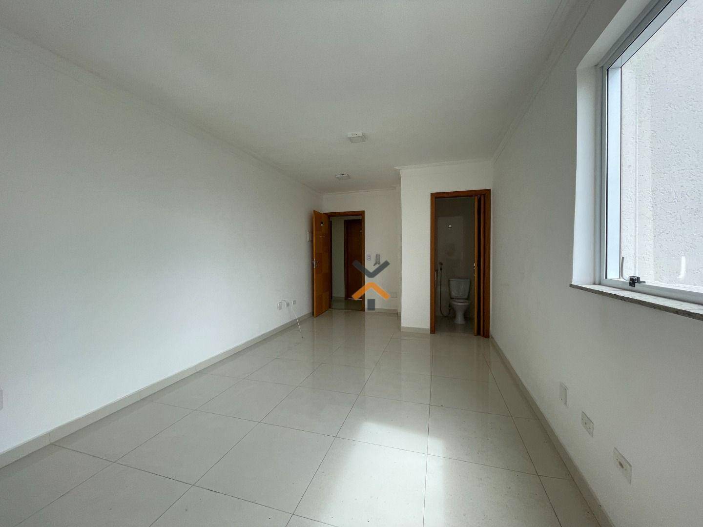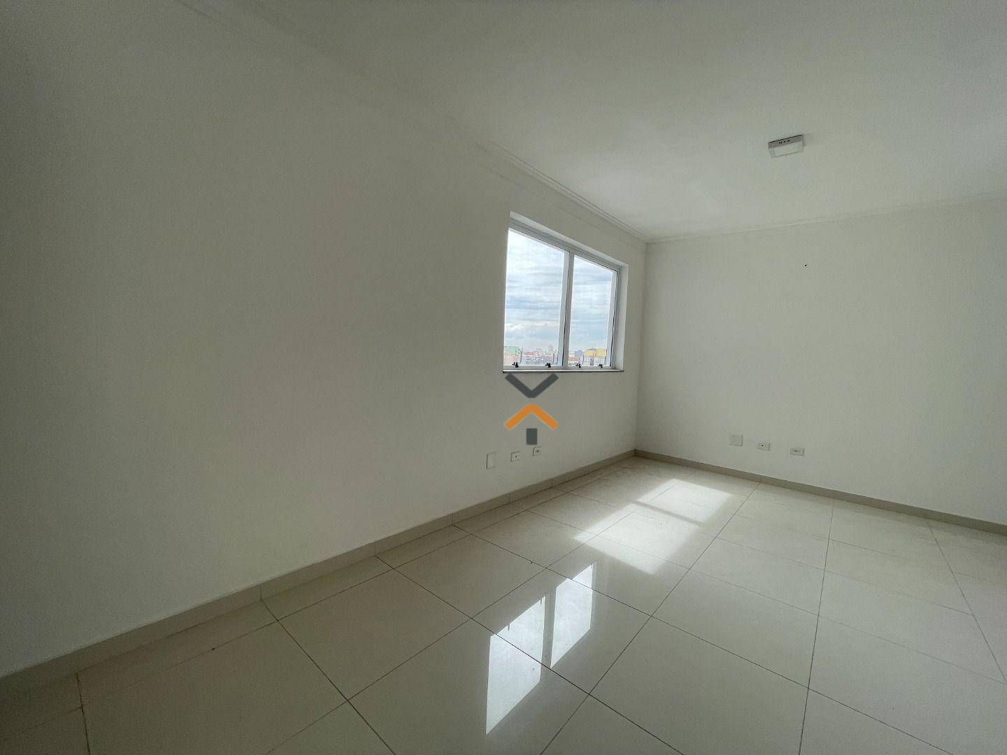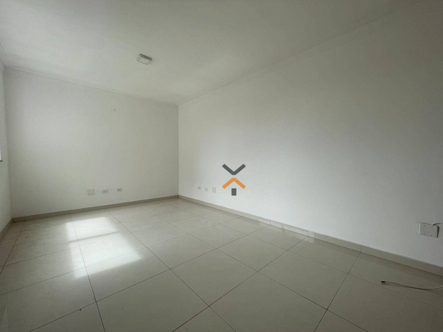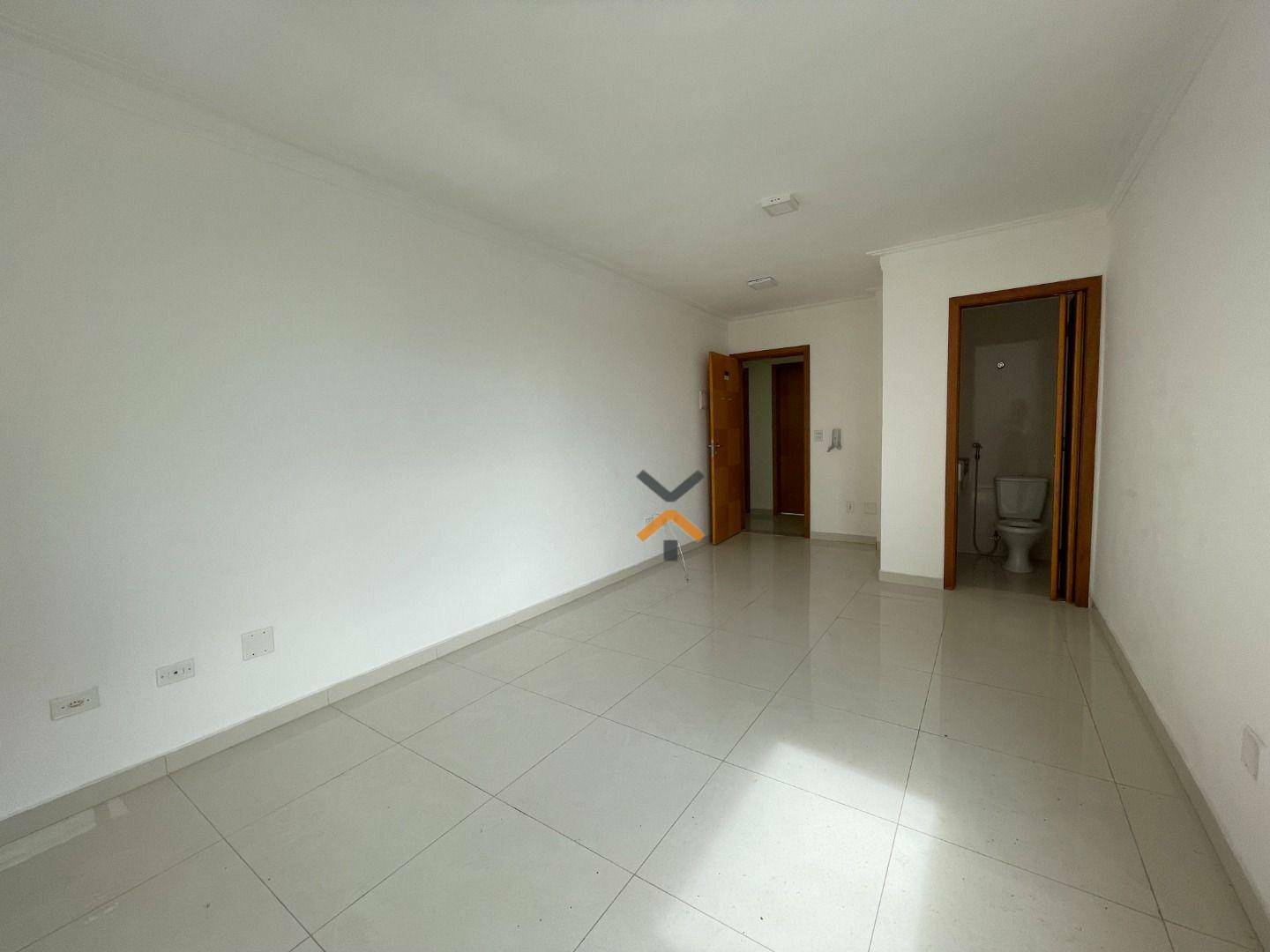 Sala comercial com 25 m², banheiro, divisória em vidro para uma pequena copa, sala com janelas amplas, bem ventilada, com iluminação natural, piso em porcelanato.