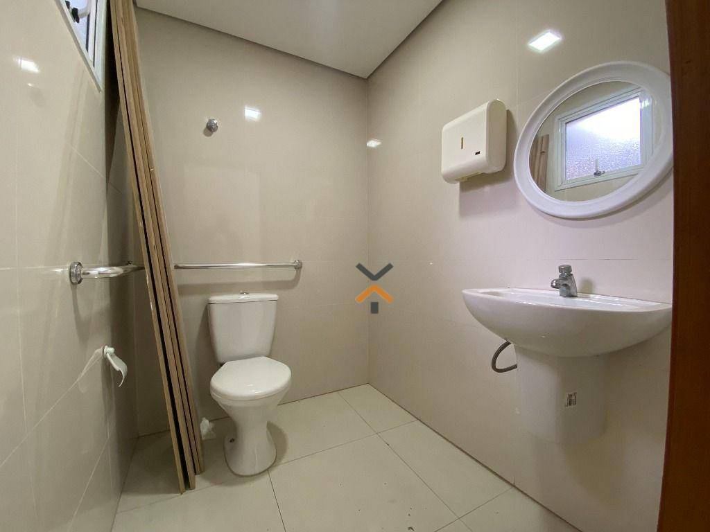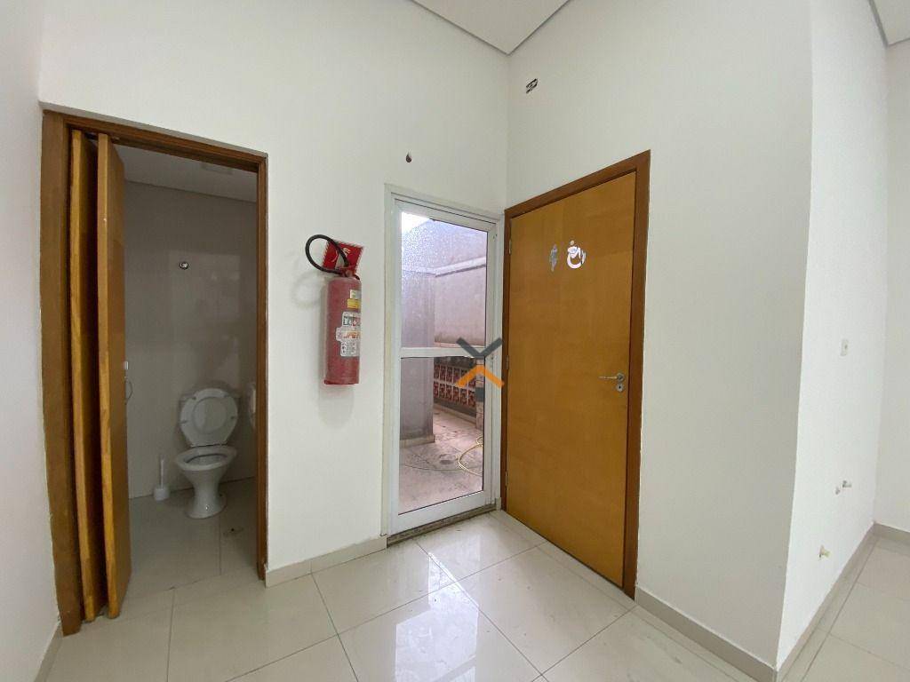 Espaçoso salão integrado a um escritório, com banheiros, revestimento em porcelanato, acabamento em gesso e quintal. Possibilidade de adquirir vaga de garagem por R$250,00. mensais.