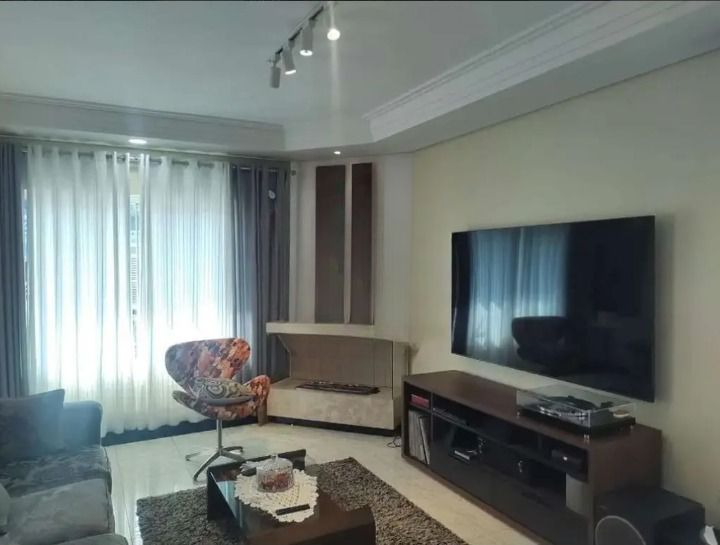 Sobrado de esquina com três amplas suítes (todas com sacada, sendo uma máster com closet e hidromassagem), saleta íntima com jardim de inverno, sala três ambientes com 58m² contendo bar e lareira a gás, lavabo, home theater privativo, sótão de áudio e vídeo, cozinha ampla, área de serviço com dependência completa (quarto e banheiro), quintal com espaço gourmet e churrasqueira, além de garagem para 6 carros (sendo 4 vagas cobertas) com segundo espaço gourmet para festas.