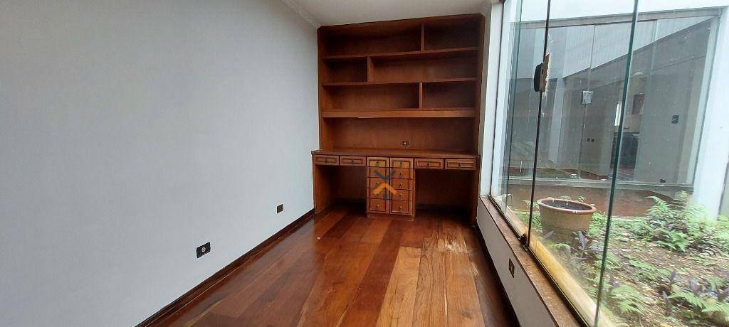 Sobrado composto por 3 dormitórios todos suítes com banheira, closet e armários, 4 banheiros todos com box de vidro e armários, 1 lavabo, 3 salas (jantar, visitas e TV), Jardim de Inverno, lareira, tudo em piso de madeira, 1 escritório, 1 cozinha ampla toda planejada, despensa, lavanderia, corredor lateral, quintal, 1 área gourmet com piscina e churrasqueira, banheiro e garagem coberta para 8 carros.