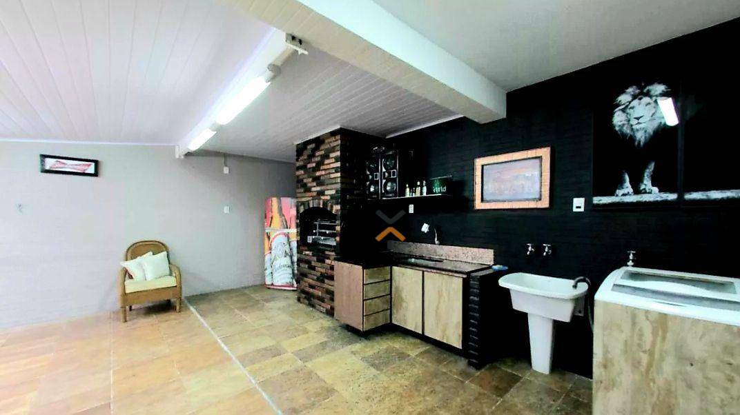 Este espaçoso sobrado possui, 3 dormitórios 1 suíte com hidromassagem e ar condicionado, lavabo, sala de estar, copa, cozinha, área de serviço, espaço gourmet com churrasqueira, garagem 2 carros, portão automático, aquecedor a gás, totalmente mobiliado. Edícula com dormitório, cozinha, banheiro e lavanderia independentes.