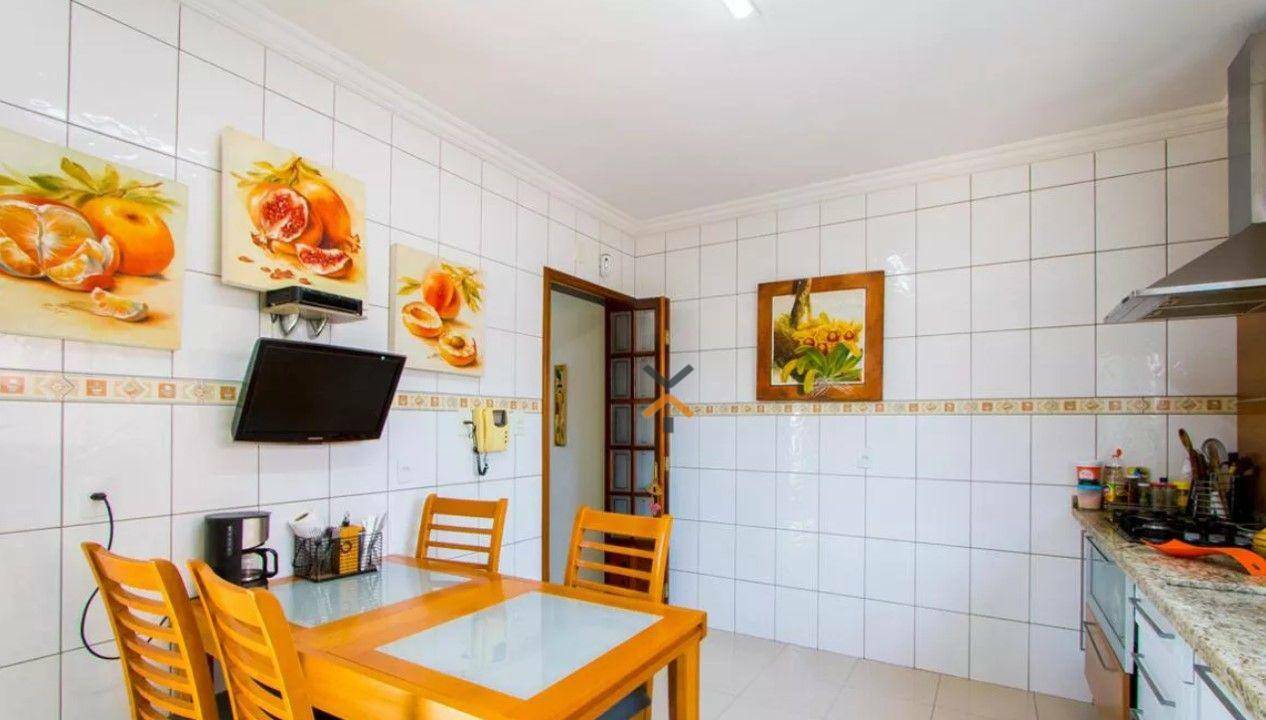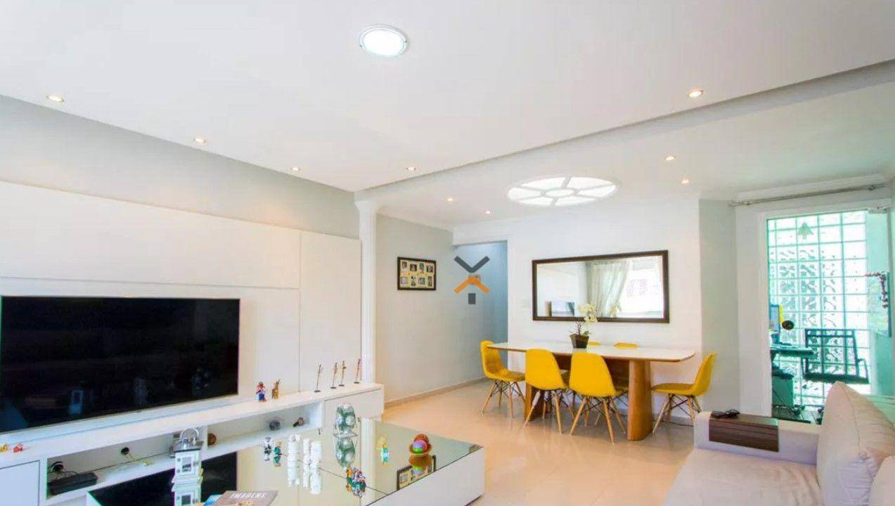 Sobrado de 207m², com 3 dorms amplos, sendo uma suíte com sacada, sala 2 ambientes com sacada, ampla cozinha planejada com quintal, 2 lavabos, lavanderia com armários, espaço gourmet com churrasqueira, pia e fogão, além de quarto adicional no andar térreo e garagem para 4 carros grandes.
